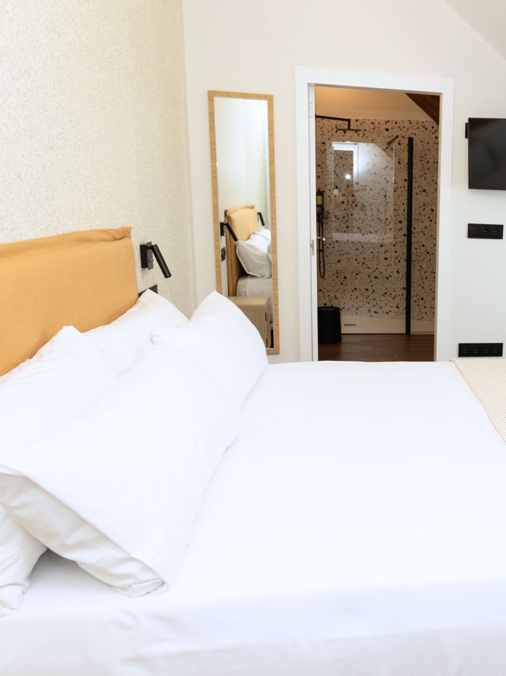 Habitaciones exteriores, cómodas y luminosas, con vistas que conectan con la naturaleza, baño privado, ducha, suelo radiante y wifi gratuito.
